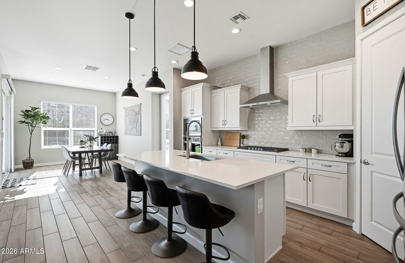 Listing details for 24208 20th Pl, Phoenix, AZ 85024 : No neighbors in front. No neighbors behind. Just open space, a park view, and a mountain backdrop - all in a newer build right off the 101. The backyard sets the tone. An oversized lot gives you breathing room, while the PebbleTec pool with Baja step, grassy area, and private putting green create a space that's meant to be enjoyed. From the patio, you'll watch the sun set over the mountain with the pool and yard just steps away. Double sliding glass doors open wide, blending indoor and outdoor living and naturally extending the main living space. Inside, natural light fills the open-concept layout. The kitchen, dining, and great room flow together in a way that feels modern, functional, and effortless. It's a floor plan that works - whether you're hosting friends, gathering around the island, or simply moving through everyday life. And the location is what ties it all together. Tucked inside a gated community with quick access to the Loop 101 and Cave Creek Road, you're minutes from Desert Ridge and High Street, hiking and biking at the Desert Sonoran Preserve, Norterra, Cave Creek, North Scottsdale, Downtown Phoenix, and the airport. This is North Phoenix living done right - newer construction, gated privacy, mountain views, usable yard space, and real access without sacrificing convenience.