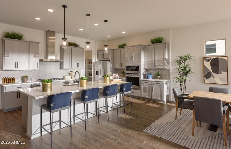 Listing details for 2423 Dolcetto Dr, San Tan Valley, AZ 85143 : New Build Construction with an anticipated completion date of March. Home features include a gourmet kitchen and 8 foot interior doors. Western Contemporary exterior.