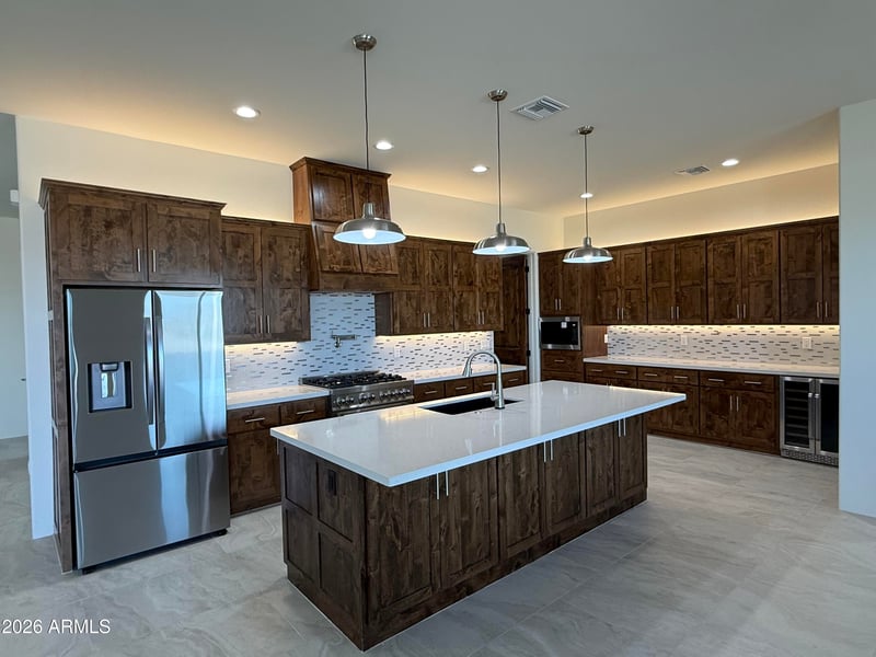 Listing details for 2430 Lupine Ln, Wickenburg, AZ 85390 : Experience ultimate seclusion in this custom Santa Fe masterpiece, perfectly positioned on a sprawling 1.3-acre lot in the prestigious Three Crosses community. Backing directly to State Trust Land, this estate offers unobstructed mountain views and unmatched privacy with no HOA restrictions. This exceptional equestrian property is fully zoned for horses with ample space for custom corrals or a private arena, providing direct access to protected land for endless riding and exploration.