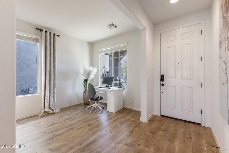 Listing details for 2430 Saint Anne Ave, Phoenix, AZ 85042 : STUNNING 4 bedroom, 3 bathroom two-story home, built just 7 years ago and nestled inside a private gated community in the heart of Phoenix! Spanning 2,599 square feet, this home offers a highly desirable open floor plan with thoughtful functionality throughout. The main level features a spacious primary suite, providing the ideal retreat with added privacy, along with a downstairs den that is perfect for a home office, flex space, or guest area. At the center of the home is a stunning chef's kitchen that seamlessly opens to the living room, highlighted by soaring ceilings and an abundance of natural light. This layout was designed for both everyday living and effortless entertaining. Upstairs, you're welcomed by a large loft space, ideal for a second living area, media room, or playroom. Surrounding the loft are three additional bedrooms and two bathrooms, all positioned to capture breathtaking views of South Mountain. Step outside to a beautifully designed backyard featuring lush natural grass and charming bistro lighting that creates the perfect ambiance for relaxing evenings and unforgettable Arizona sunsets. Located in a centrally positioned gated community, this home offers quick access to some of the best dining, shopping, and entertainment Phoenix has to offer, all while maintaining a sense of privacy and tranquility.