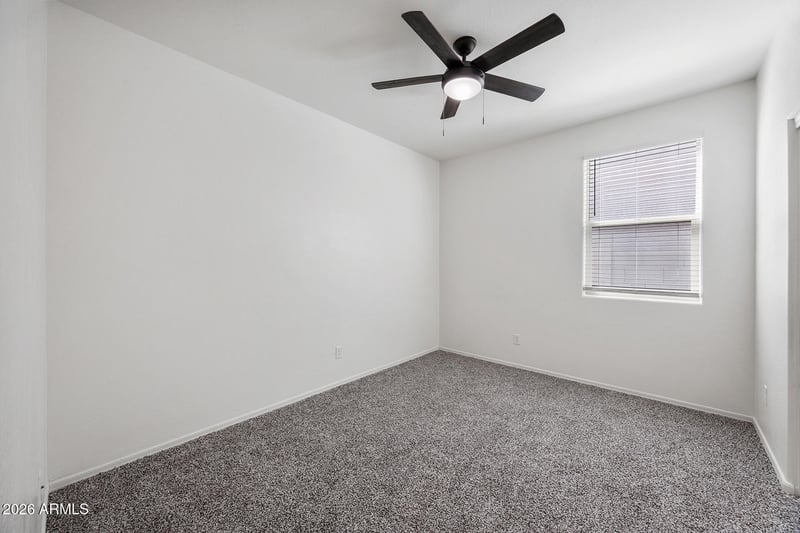 Listing details for 2435 Kowalsky Ln, Phoenix, AZ 85041 : Modern & Move-in Ready! Built in 2023 with fresh 2026 interior paint & new carpet, this home offers a bright, open layout with an open living room & kitchen, filled with natural light from multiple windows & large tile flooring for low maintenance. The kitchen features a center island with breakfast bar seating, stainless steel appliances, pantry & gray cabinetry. A separate office/den provides flexible use for work, hobbies or potential 4th bedroom. The primary suite is well-sized with an ensuite offering dual vanities & walk-in shower. Two additional bedrooms are comfortably sized & share a full bath. The backyard includes synthetic grass & pavers with room to customize. Move-in ready with opportunity to make it your own. Community offers parks, playgrounds & convenient access to I-17.