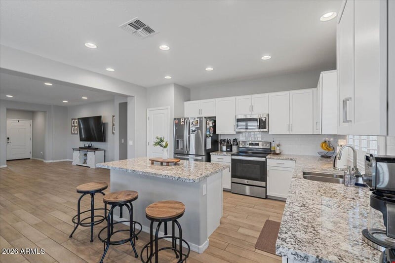 Listing details for 2438 218th Dr, Buckeye, AZ 85326 : Welcome to this one acre semi custom home in Buckeye, Arizona. Built in 2020, this property offers 4 bedrooms, 3 bathrooms, and 2,233 square feet of thoughtfully designed living space with upgrades throughout.