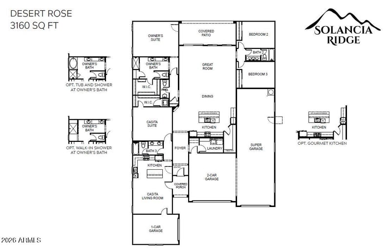 Listing details for 24415 Baker Dr, Wittmann, AZ 85361 : Single-Story, 3160 sqft on a 1 acre lot with 3 Bedrooms, 2.5 Baths, Attached Casita 1 Bedroom, Full Kitchen, Casita Living Room, Casita Laundry, Four-Car Tandem Garage + RV Garage. The RV Garage is 15' x 50' with at 14' tall door on it. Spacious open kitchen, 42'' cabinets, granite countertop, huge kitchen island, stainless steel appliances, large owners suite! Solancia Ridge features quality new homes on one-acre homesite with attached RV garages, bring all your toys!! Pristine desert surrounding makes Quick access to major freeways and less than 30 minutes from Lake Pleasant! Seller paid closing costs and rate buydown available with preferred lender VIP Mort. To be built, buyer to select structural options and design options. Pricing will change when this is done. 6-8 months to build