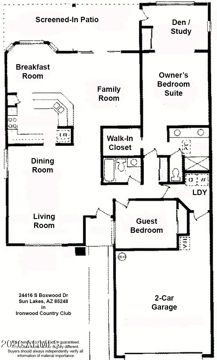 Listing details for 24416 Boxwood Dr, Sun Lakes, AZ 85248 : Here is your chance to live in the terrific Ironwood Country Club at an affordable price! Den / study off Owner's suite. Relax in the screen-in patio. 2x6 exterior construction for energy efficiency & sound reduction. Extended garage with lots of extra storage cabinets. All appliances included. Some existing FURNITURE and FURNISHINGS can be INCLUDED at no additional cost. Golf cart too! --- Ironwood Country Club is a conveniently located in-town guard-gated Active Adult 40/55+ neighborhood. It's among the most desirable Active Adult destinations in the Valley, thanks to its diverse amenities and great in-town location. IronOaks community features 3 in-neighborhood restaurants, 2 fabulous golf courses with 45 holes of golf, fitness center, tennis, pickleball, softball, 7 pools & much more!