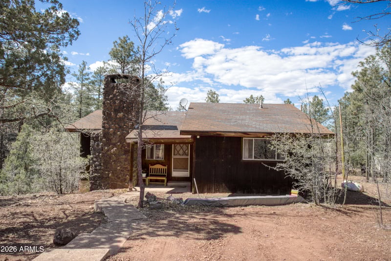 Listing details for 2448 Chiricahua Dr, Show Low, AZ 85901 : Tucked at the end of a quiet cul-de-sac, this 2-bedroom, 1-bath cabin sits on two separate parcels totaling .75 of an acre, offering privacy and usable space. The property backs onto wooded land and is surrounded by mature ponderosa pine, juniper, and oak trees, creating a true mountain setting. Inside, the great room features a wood ceiling and a large fireplace, providing a comfortable space for cooler evenings. Outdoor areas offer expansive sunset views, along with clear night skies ideal for stargazing. With city water already connected and natural surroundings just outside your door, this property offers a practical balance of comfort, privacy, and potential.