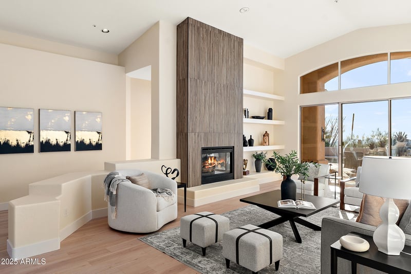 Listing details for 24616 111th St, Scottsdale, AZ 85255 : LIVE EACH DAY AS IF YOU ARE ON VACATION.....Located on one of the best elevated lots in Quail Ridge on the slopes of Troon Mountain, this recently reimagined home offers breathtaking 360 degree mountain, twinkling city light & year-round sunset views. Beautifully appointed inside & out. Ideal for the discerning buyer looking for perfection, privacy & exclusive living—or for a vacation home offering a private, secure, lock up & go paradise! As you enter you are greeted w/ breathtaking views and a large living room with floor to ceiling gas log fireplace. The entire interior is light & bright with its soaring ceilings and walls of glass. The newly designed kitchen offers a SS gas cook-top & dbl ovens, beautiful quartz countertops and a breakfast nook. The primary suite offers floor to ceili ceiling windows & city light views, well appointed walk-in closet, brand new dual vanities and an oversized walk-in shower. Bedroom 2 is a mini primary suite & the 3rd bedroom is currently used as a den w/large walk in closet. The spacious laundry w/ sink features a separate storage room. Alluring landscaping in front & rear yard offers the best of AZ outdoor living. The secluded & gated front courtyard offers views of Troon Mountain and the spectacular backyard showcases an oasis dreama large pool w/ a zen fountain display, spa, stone fireplace & outdoor kitchen. The 2 car garage has an abundance of storage cabinets. WELCOME HOME!