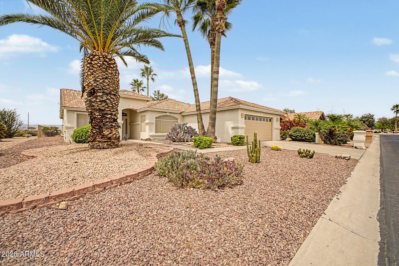 Listing details for 24722 Mooncrest Dr, Sun Lakes, AZ 85248 : Popular Palmera Model located in the Gated Community of Oakwood. This 1841 sq ft Floor Plan features VAULTED CEILINGS, an EAT-IN KITCHEN w/ WORK ISLAND, WALK-IN PANTRY & 2026 INTERIOR / EXTERIOR PAINT! Kitchen overlooks the GREAT ROOM w/ FULL LENGTH PATIO. The Primary Suite includes a SPACIOUS WALK-IN CLOSET & Private Bath. The Guest Bedrooms are on the opposite side of the home w/ the Guest Bath. A PRIVATE DEN overlooks the front yard. There is plenty of Extra Storage in the Laundry Room & the Extended 2-Car Garage w/ BUILT-IN CABINETS, perfect for a Golf Cart / Shop! The Fenced Backyard w/ MOUNTAIN & Baseball Diamond VIEW, is perfect for entertaining. Enjoy quick access to the freeway / 101 & AMAZING AMENITIES like: Golf, Tennis, Pickleball, Pools, Fitness Center, Clubs & Restaurants!