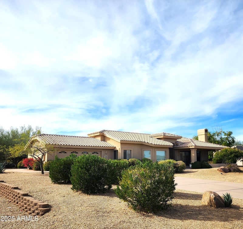 Listing details for 24810 Vado Ct, Rio Verde, AZ 85263 : Located on N. Vado Court! One of the most desirable streets in the community. Excellent view of the sunrise & ''Four Peaks Mountains'' from the front covered patio or enjoy the sunset from the rear covered patio. The backyard is spacious, ideal for a future pool. This popular floorplan is traditional - large Great Room with fireplace & mtn views, formal Dining Room, Kitchen with island, Breakfast Room overlooking the backyard.. The primary bedroom is very generous in size with a full bath. The guest room and bath are accommodating. The office/media room or 3rd bedroom is very adaptable to meet your needs. This room has a direct exit through a slider to the rear covered patio. 2 car garage & a sideload golf cart area. What a wonderful opportunity to become a part of the Rio Verde Community