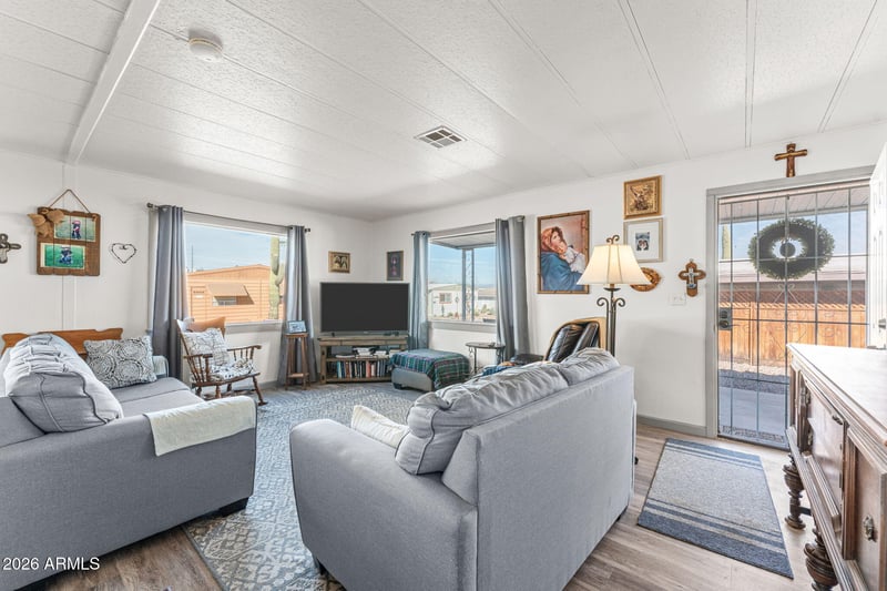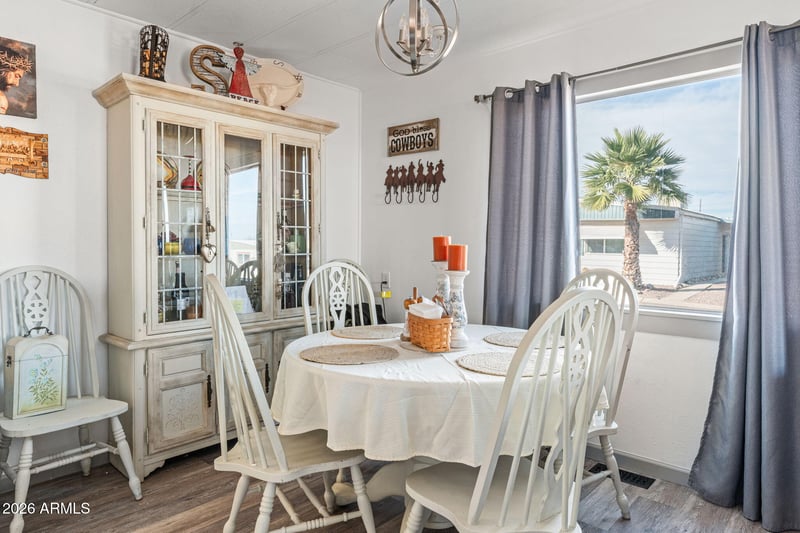 Listing details for 2501 Wickenburg Way #14, Wickenburg, AZ 85390 : Westpark #14 showcases a stunning transformation with extensive upgrades throughout. The home features new appliances, cabinetry, flooring, paint, sink, faucets, and a stylish tile backsplash. New drapes, updated lighting, and textured walls enhance the ambiance, creating a modern and inviting space.