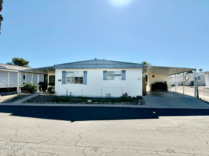 Listing details for 2501 Wickenburg Way 22 --, Wickenburg, AZ 85390 : Discover this charming 1973 mobile home located in West Park, a desirable 55+ community in Wickenburg, This 2b/1b home offers 1,152 sq ft of comfortable living space. Enjoy a functional kitchen with ample cabinetry and a bright, spacious living area ideal for relaxing or entertaining, while sliding glass doors open to a bright Arizona room, perfect for enjoying Wickenburg's year-round sunshine. The primary bedroom features a large walk-in closet. Off the kitchen is direct access to the covered carport for added convenience. West Park offers a quiet, friendly lifestyle close to downtown Wickenburg shopping, dining, medical services, and community events. A great affordable opportunity!