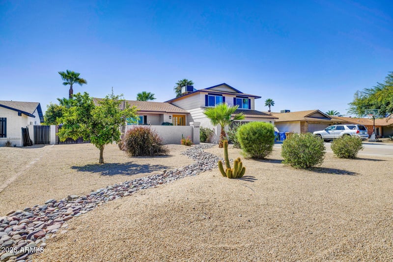 Listing details for 2509 Acoma Dr, Phoenix, AZ 85023 : Thunderbird Valley Gem with Private Pool & NO HOA! Welcome to your Oasis! Located in the highly desirable Thunderbird Valley, this 4-bedroom, 3-bath home offers 2,344 sq ft of versatile living space with a multi-level split floor plan. The eat-in kitchen boasts quartz countertops, a breakfast bar, and all appliances included. The upstairs primary suite offers a private retreat with two additional bedrooms. A fourth bedroom on the lower level provides ideal space for guests, a home office, or multigenerational living. Step outside to a fantastic North/South facing backyard, featuring a sparkling private pool, a covered patio, and artificial grass. Complete with an attached 2-car garage, 6 slab parking spaces, and dual-pane windows. Located near top-rated schools. This one won't last long!