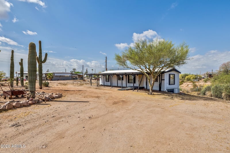 Listing details for 251 Starr Rd, Apache Junction, AZ 85119 : Rare opportunity to own over an acre with stunning Superstition Mountain views in Apache Junction. This 2 bedroom, 2 bathroom home offers a bright, functional layout with spacious living areas, stainless steel appliances, and ample cabinet storage. Enjoy outdoor living under the full-length covered patio. The property is fully usable and set up for horse use, featuring fencing, gated access, and plenty of room for trailers, RVs, or future improvements. Open space, flexibility, and mountain views make this a great option for those seeking land and convenience, just minutes from shopping, dining, and outdoor recreation. Rare opportunity to own over an acre at the base of the Superstition Mountains with stunning desert views and wide-open space. This 2 bedroom, 2 bathroom home offers the perfect blend of functionality and flexibility in a highly desirable Apache Junction location. Enjoy your morning coffee under the full-length covered patio while taking in the mountain backdrop. Inside, you'll find a bright, open layout with spacious living areas, ample cabinet storage, and stainless steel appliances. The property is fully usable and set up for horse use, featuring fencing, a gated entry, and plenty of room for animals, trailers, RVs, or future improvements. Whether you're looking to expand, customize, or simply enjoy the extra space, the possibilities here are wide open.
