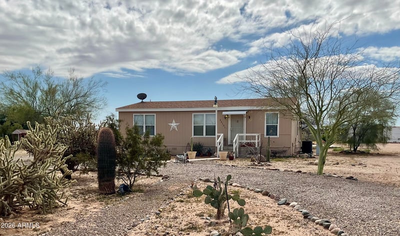 Listing details for 25131 Gambit Trl, Wittmann, AZ 85361 : Escape the HOA and enjoy wide-open Arizona living! Set on over 1 acre of beautiful desert land with breathtaking azure skies and unforgettable sunsets. Inside you'll find an inviting 3-bedroom, 2-bathroom split floor plan plus a massive 500+sq ft. bonus room--perfect for a game room, workshop or home office. The property includes 3 Conex-style storage containers and plenty of space for RVs, horses, ATVs, pets, and toys. Explore miles of nearby BLM land. Move-in ready! Recent upgrades include: New carpet, fresh paint, new A/C (2022) and a new roof on the bonus room (2023). Located in a great neighborhood with a shared well and low-maintenance landscaping. Conveniently located: 0.4 miles south of Patton Rd and just 7 miles from Grand Ave (US 60) Discover the beauty of the Wittmann lifestyle.