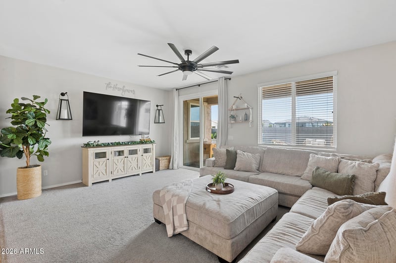 Listing details for 25168 135th Ave, Peoria, AZ 85383 : SPECIAL LENDER FINANCING AT 4.99%! Welcome home! Built in 2020 and truly better than new, this beautifully maintained 3-bedroom, 2.5-bath ranch-style home offers a seamless blend of modern design and thoughtful, move-in-ready upgrades. Situated on a premium lot with no neighbor behind, you'll enjoy enhanced privacy and open views. The backyard is already complete, featuring artificial turf, pavers, an RV gate, and a covered patio--a low-maintenance outdoor space designed for effortless entertaining and everyday relaxation from the start. Inside, the open-concept layout is filled with natural light, tall ceilings, and distinctive design touches that create a warm and inviting atmosphere.
