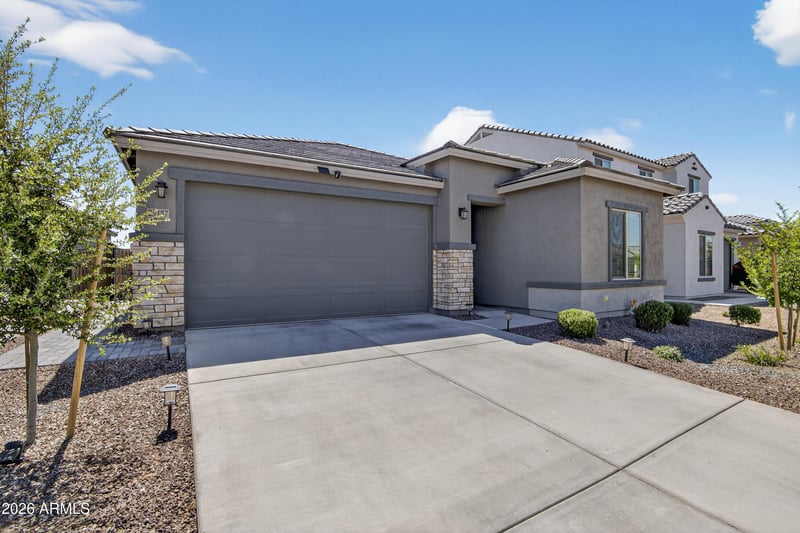 Listing details for 25187 Romley Rd, Buckeye, AZ 85326 : Skip the wait and hidden upgrade costs of new construction! Built less than two years ago, this single-story home in Cooper Falls offers the feel of a new build with upgrades already complete and remaining builder warranties for added peace of mind. The open layout features tile flooring in main living areas, plush carpet in bedrooms, recessed lighting, ceiling fans throughout, and a Ring security system. The kitchen showcases espresso cabinets with crown molding, granite countertops, stainless steel appliances, and a large island with breakfast bar. The spacious primary suite offers a walk-in closet and private bath. Unlike many nearby new builds with dirt backyards, this home already includes premium artificial turf, pavers, and a covered patio--truly move-in ready.