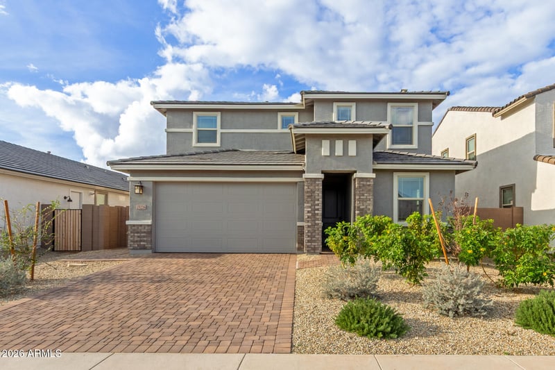 Listing details for 25226 172nd Ln, Surprise, AZ 85387 : Located in the desirable Asante Discovery Community, this home offers outstanding curb appeal with a paver driveway. The light, bright, open-concept Sienna floor plan features a spacious great room with tile flooring throughout the main living areas, creating an inviting atmosphere enhanced by upgraded finishes. The gourmet kitchen is a standout, showcasing a large island, ample cabinetry, stylish backsplash, gas range, and stainless steel appliances—perfect for both everyday living and entertaining. The expansive primary suite offers a peaceful retreat with a luxurious bathroom. A conveniently located upstairs laundry room adds everyday ease. Enjoy outdoor living in the beautifully landscaped backyard, ideal for relaxing or hosting gatherings.