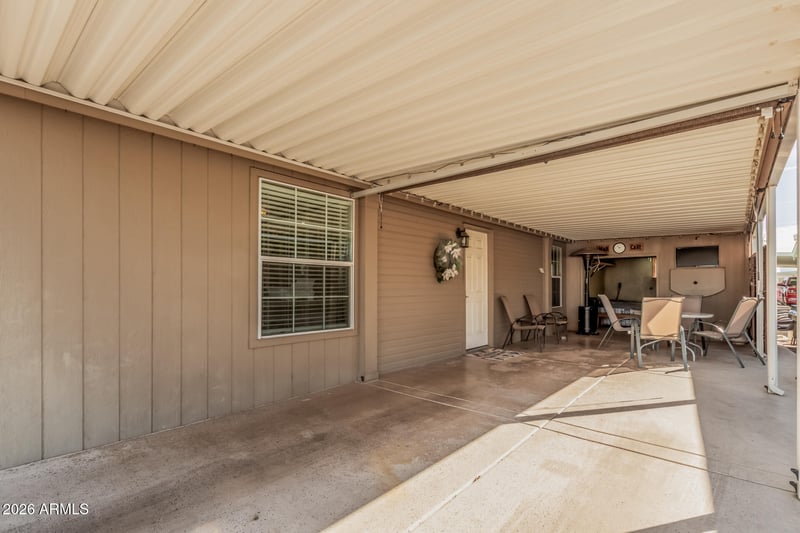 Community amenities include a recreation center with heated pool, pickleball court, and shuffleboard. Conveniently located near the Loop 202, shopping, restaurants, and local services. RV parking is available within the community for a nominal fee. Rentals are not permitted. One pet allowed per household.