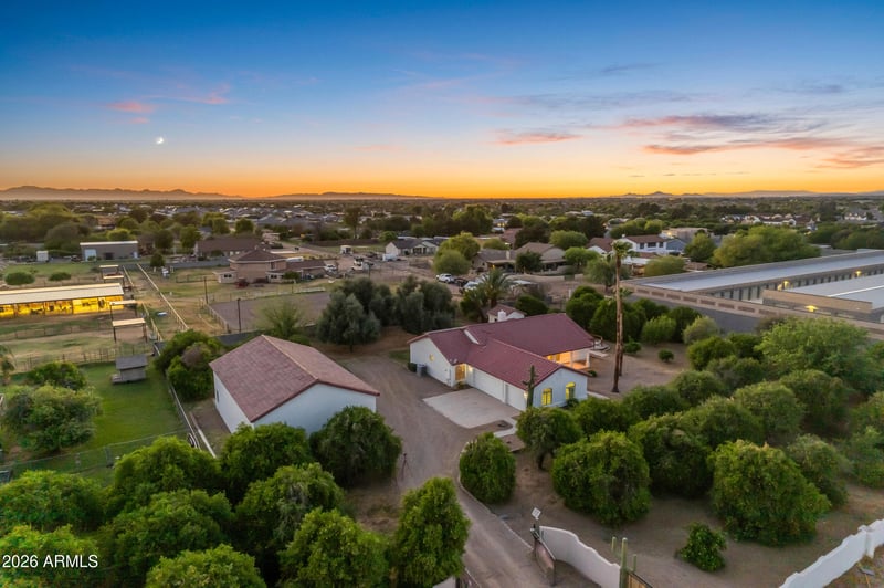 Listing details for 25412 183rd Pl, Queen Creek, AZ 85142 : You will be hard pressed to find a home that feels this private while being so conveniently located. Tucked at the end of a quiet dead end road & surrounded by your own private orchard, this estate offers a rare sense of seclusion and tranquility. Beyond the private gated entry sits a custom built home that has just been refreshed with new flooring, paint, & fixtures. In addition to the spacious three car attached garage, the property also features an impressive 30 by 50 detached shop equipped with two 12 foot doors, one 10 foot door, 200 dedicated amps, multiple 220V outlets, & additional pad space for parking, storage, or open air workspace. Step outside & enjoy the intoxicating scent of orange blossoms from the surrounding mature orchard, which includes multiple varieties of citrus along with peach, plum, pomegranate, olive, fig, date palm, grapes, & more. Inside, the home offers a well designed split floor plan with high ceilings, a propane fireplace, & a spacious private primary suite featuring a huge walk in shower. Offered for the very first time by the original owners, come experience this exceptional property in person; you won't be disappointed.