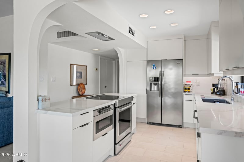 The generous primary suite boasts a luxurious walk-in shower, while the second suite offers a relaxing tub/shower combination. Enjoy Arizona living year-round in the charming front courtyard or the private covered patio complete with a built-in BBQ and unforgettable mountain views.