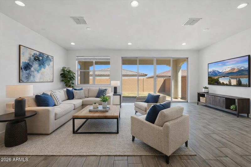Listing details for 2542 Pecan Rd, Phoenix, AZ 85041 : Welcome to this stunning home built in 2023, offering modern design and functional living. This spacious Sage floor plan features 4 bedrooms and 3 full bathrooms with a bright, open layout perfect for everyday living and entertaining. The interior showcases luxury finishes including Oxide quartz countertops, Sonoma Maple Linen (white) cabinets, and elegant 7x22 wood-look plank tile flooring throughout the main living areas, while the bedrooms feature comfortable carpeting. A versatile bonus room offers the perfect space for a home office, gym, library, or game room. The backyard is a blank canvas, ready for the new owner to design their ideal outdoor space.