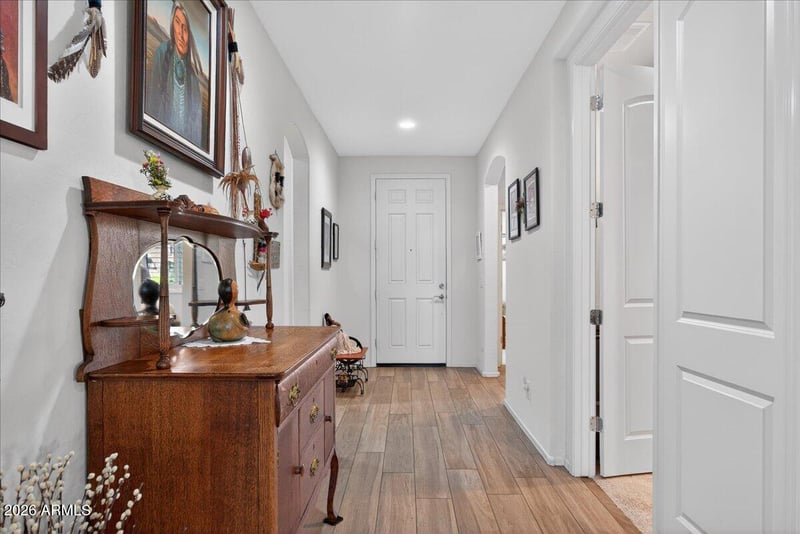 Listing details for 25466 163rd Dr, Surprise, AZ 85387 : Upgraded, move-in ready home with a chef's kitchen, flexible den, and a climate-controlled 3-car tandem garage in Surprise. This beautifully maintained 3-year-old home offers 2 bedrooms plus a den and 2 bathrooms with an open, functional floorplan. The chef's kitchen features a large center island, upgraded finishes, and custom light fixtures, complemented by porcelain tile flooring throughout and plantation shutters. The backyard is thoughtfully landscaped with synthetic grass, patio pavers, a gazebo, and mature trees, creating a private outdoor retreat. Additional highlights include an electric vehicle charger and an insulated 3-car tandem garage with a mini-split system, ideal for climate-controlled storage, a workshop, or home gym. Move-in ready with modern upgrades throughout.