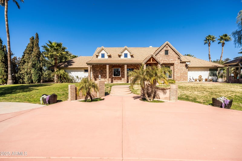 Listing details for 25509 Lime Dr, Queen Creek, AZ 85142 : With 3 acres, this property is absolutely beautiful. With 5 gazebos, 4 fountains, a large pool, outdoor fire pit and fireplace, 2 sheds, 5 covered corals/horse stalls and chicken coop, mature queen palms, several fruit trees, plus much more! The home itself features 4 bedrooms and 3 full bathrooms. Anderson windows and solid oak doors. The kitchen includes granite counters, gas appliances that are 2 years old, an island and plenty of cabinets. In addition, 1 new AC unit and the other is only 3 years old. 4 car garage total, with 2 in the front and 2 in the back of the property. This property would make an amazing event space. Imagine hosting a beautiful outdoor wedding under one of the 5 gazebos or a fancy dinner party outside under the Palm Trees and lights. Come and see!