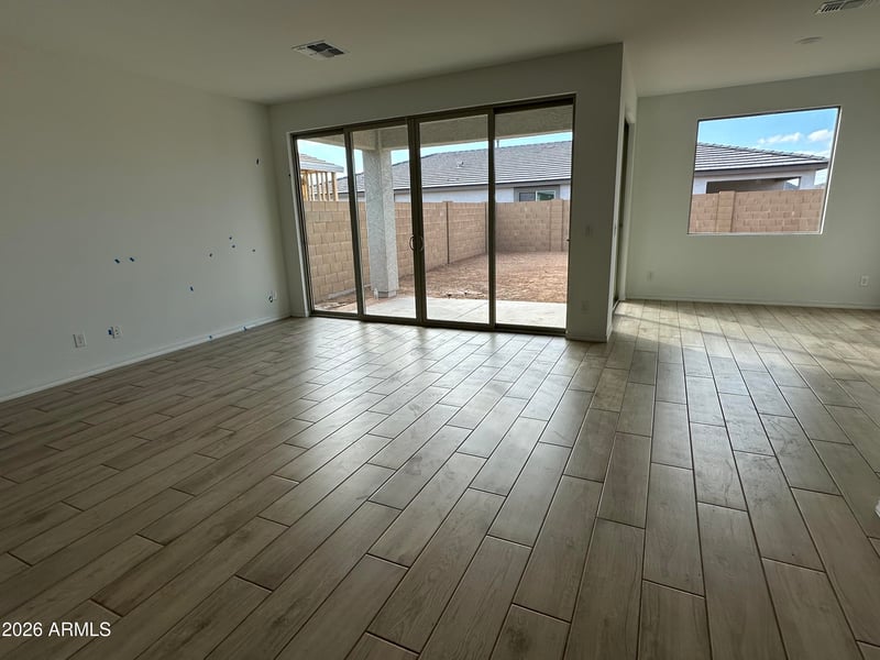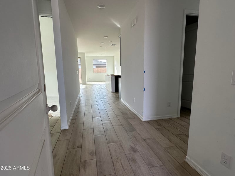 Listing details for 25538 75th Ln, Peoria, AZ 85383 : Brand new community in North Peoria! Beautiful 3 bedroom/ Den/ 2 bath home with 2 car garage located at the Retreat at Aloravita. Estimated completion Feb. 2026. This well-thought-out single-story home has great curb appeal with a beautiful farmhouse exterior, front desert landscape and paver driveway. The open concept kitchen is perfect for entertaining and features a large Island, walk-in pantry and stainless steel appliances with gas range. It also offers our Roosevelt Collection which includes white 42'' cabinets, white quartz kitchen countertops, Arabesque tile backsplash, and 8x36 plank tile in all common areas. The great room has a 4-panel sliding glass door, perfect for indoor/outdoor living! The primary bedroom has a spacious walk-in closet, double sinks with quartz countertops, and large walk-in shower. This home also includes a refrigerator, washer/dryer, and blinds making it move in ready. Great location close to dining, freeways, parks, and entertainment!