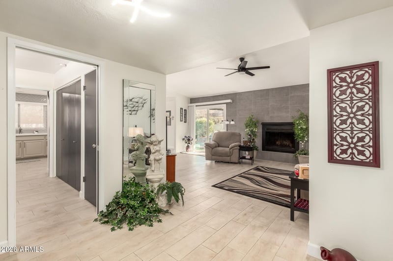 Listing details for 25618 Ontario Dr, Sun Lakes, AZ 85248 : Professionally remodeled Santa Fe Style Home in Sun Lakes. Bright and open main living area, designer kitchen with SS appliances, incredible master bath with Italian tile and floating vanity, modern designer lighting, 2 bedroom and 2 baths. Tile Floor. Paint Inside and Out in 2022, New Roof foam and Elastomeric Covering, New Trane HVAC 2016, paver driveway, sidewalk and patio installed in 2023.