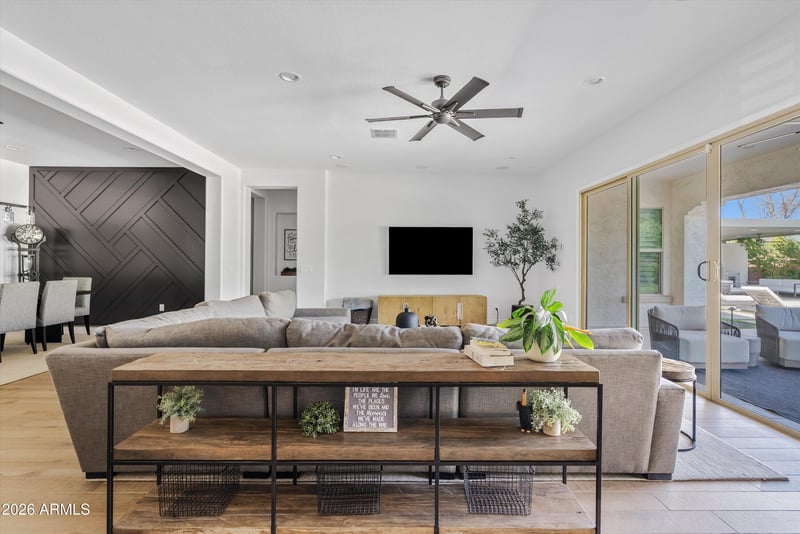Listing details for 2562 Clark Dr, Gilbert, AZ 85297 : This 5 bed, 4.5 bath home combines thoughtful design with elevated living. The backyard is a private retreat with a shaded pergola, waterfall into heated pool and spa, covered patio with fireplace and beverage fridge, Memphis grill, pavers, turf, putting green, garden beds, orange trees, and RV gate. Inside, 12' ceilings and a split floor plan offer space and privacy. The kitchen features Monogram gas appliances, dual ovens, tile backsplash, insta-hot water, and walk-in pantry. The primary suite includes dual vanities, large tiled shower, soaking tub, walk-in closet, and a 3.5-car garage with epoxy floors and cabinetry.