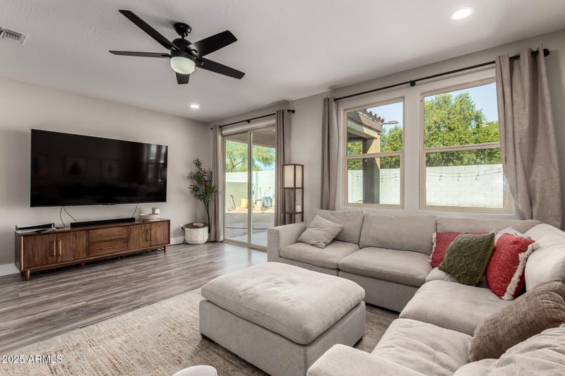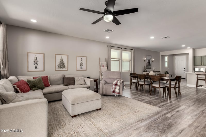 Listing details for 25650 Euclid Ave, Buckeye, AZ 85326 : Fantastic opportunity to own this lovely 4-bedroom home in Encantada Estates! You'll be delighted by the captivating open layout with high ceilings, a soothing palette, recessed lighting, blinds, and stylish wood-look flooring. The well-appointed kitchen comes with ample cabinetry,, a pantry, and a center island with a breakfast bar for casual dining. Have a good night's sleep in the cozy primary bedroom, featuring plush carpeting, a private bathroom with double sinks, and a walk-in closet for an organized wardrobe. Imagine relaxing afternoons in the backyard, which offers a covered patio, well-laid pavers, and enough space to craft your dream outdoor oasis. Don't miss out on this fantastic opportunity!