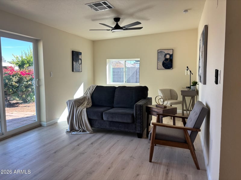 Listing details for 2573 Commonwealth Cir, Chandler, AZ 85225 : Welcome home! This beautifully updated home is truly move-in ready! Featuring brand-new wood laminate flooring thru out, the interior offers a seamless, modern look with durability and easy maintenance. The fully updated kitchen boasts white kitchen cabinets with tons of storage, stylish backsplash and new appliances Both bathrooms have been thoughtfully renovated with modern touches and quality upgrades. Fresh interior and exterior paint give the home a crisp, clean feel. With all the updates already completed, this home offers comfort, style, and peace of mind from day one. Don't forget about the location! just miles away from downtown Gilbert and Chandler as well as the 202. This home is ready for new owners. Just bring your belongings and start enjoying your new home!