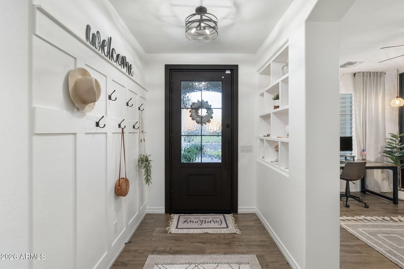 Listing details for 2587 Lodgepole Dr, Gilbert, AZ 85298 : LUXURY AND LOCATION! Style, privacy, and thoughtful upgrades come together in this standout Freeman Farms residence! Positioned on a desirable north/south corner lot with a greenbelt view and surrounded by single level homes, this modern farmhouse inspired property offers both curb appeal and a sense of space that's hard to find. The exterior makes a statement with clean landscaping, paver accents, and a custom iron entry door. This home is filled with natural light and finished with porcelain plank flooring, architectural wall details, updated fixtures, and a cohesive, contemporary design throughout. The split layout includes 4 bedrooms plus a dedicated office or flex space, along with 2.5 well upgraded bathrooms. The kitchen serves as the heart of the home, featuring Taj Mahal quartz countertops, a farmhouse-style sink, premium stainless appliances with an induction cooktop, and a generously sized pantry. Window treatments include a combination of shutters and automated shades for comfort and convenience. The primary suite offers a true retreat, highlighted by a spa inspired bathroom with a luxurious Dune slipper soaking tub, custom walk-in closet, and a calming, private atmosphere. Secondary bedrooms are thoughtfully designed, each with its own walk-in closet, and the split floor plan enhances privacy. The resort-style yard is ready for year-round enjoyment. A saltwater PebbleTec pool with waterfall feature is paired with travertine decking, turf, shaded patio areas, a pergola, and a built-in outdoor kitchen, perfect for entertaining or unwinding at home. Three car garage with storage cabinetry and EV charging capability. Conveniently located near shopping, dining, parks, and entertainment, this home offers a rare combination of design, function, and location!