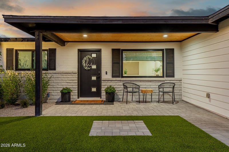 Listing details for 260 Bruce Ave, Gilbert, AZ 85234 : Exceptional single level residence w/ no HOA! ALL NEW, thoughtfully curated indoor-outdoor living! The exterior features lush landscape, paver accents, & one-car garage. Inside, 3 Bed,2 bath, open-concept layout showcases wood-look flooring, modern style & lighting, shiplap accent wall, & a neutral palette. The kitchen is designed for both form & function, featuring shaker cabinets, quartz countertops, a herringbone tile backsplash, built-in appliances, & an island w/ breakfast bar. The primary suite includes a walk-in closet & an en-suite bath w/ dual sinks & custom shower! The backyard is an entertainer's dream w/ an expansive covered patio, B/I BBQ, fire pit, putting green, sparkling blue heated pool! Minutes from/walking distance to Downtown Gilbert's dining, shopping, & nightlife!
