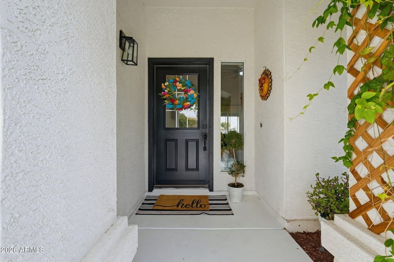 Listing details for 26027 Valencia Ave, Queen Creek, AZ 85142 : Welcome to this beautifully upgraded, non-HOA estate situated on a sprawling 1.1-acre lot in Queen Creek, just minutes from South Gilbert + Chandler Unified Schools. Fully fenced front and back yards provide exceptional privacy and a peaceful retreat, enhanced by mature landscaping, a charming front porch, and a greenhouse. The backyard is truly one of a kind. Walk the grounds to discover custom iron horse stalls and corral, over 60 mature trees, a chicken coop, and an expansive outdoor entertaining area complete with a fire pit. Recent improvements include NEW AC 2021, NEW ROOF 2021, NEW WINDOWS 2024, PAINTED EXTERIOR AND INTERIOR 2024,NO CARPET, a new front gate AND RV gate, irrigation and an additional iron gate at the horse corral. The versatile lot offers endless possibilities for : use, farming animals, RV storage, entertaining, or hosting large gatherings.Inside, the home features a 4-bedroom, 2-bath open-concept layout with no carpet throughout and beautiful upgraded flooring and fresh new paint. The kitchen and family room seamlessly connect and overlook the oversized covered patio, creating an ideal indoor-outdoor living experience. The cozy front room creates a modern space looking at the front court yard. The kitchen is equipped with upgraded appliances, including a Café refrigerator. Both bathrooms have been tastefully updated, while the primary suite showcases vaulted ceilings and breathtaking views of the San Tan Mountains. This home is minutes from the popular Pecan Lakes Entertainment, Fat Cats, Horseshoe Park & Equestrian Center and many restaurants.