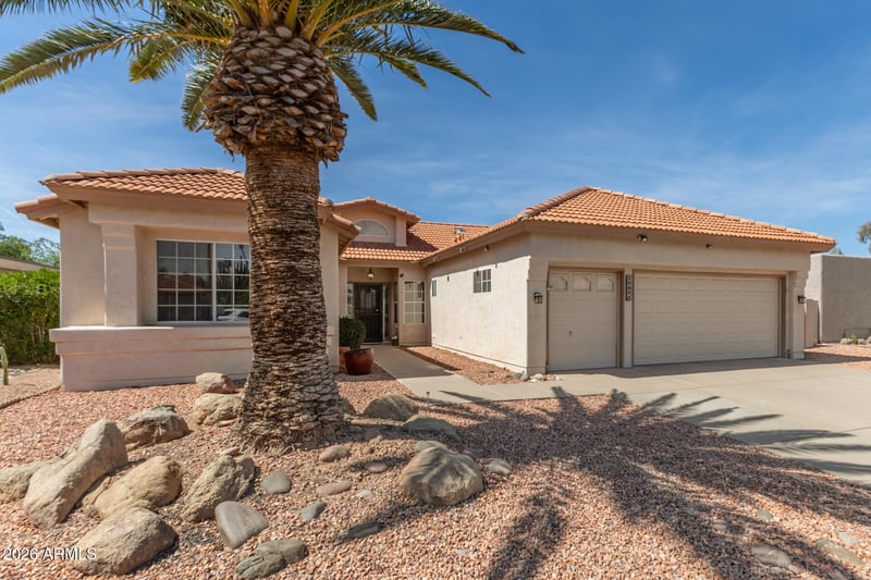 Listing details for 26052 Glenburn Dr, Sun Lakes, AZ 85248 : Well-maintained 2 bedroom, 2 bathroom home offering approximately 1,910 square feet in the desirable active adult community of Sun Lakes. This move-in ready residence features vaulted ceilings that create an open and spacious feel, along with a functional floor plan designed for comfortable everyday living. The home offers a large backyard and extended covered patio, providing ideal outdoor space for relaxing, entertaining, or enjoying Arizona's beautiful weather year-round. Additional highlights include an attached two-car garage with separate golf cart garage space, offering added convenience, storage, and easy access to community amenities.