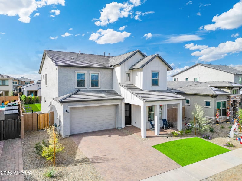 Listing details for 26080 229th Pl, Queen Creek, AZ 85142 : Discover refined desert living in the highly sought-after Harvest at Queen Creek community. Newly built in 2025, this 3-bed, 2.5-bath residence also features a dedicated office and separate den, offering flexible spaces for work, play, or relaxation. An impressive 3-car garage provides ample storage and parking, while the home's open-concept layout creates effortless flow for both everyday living and large-scale entertaining. The spacious kitchen connects seamlessly to the great room and dining areas, making it easy to host gatherings or enjoy quiet evenings at home.