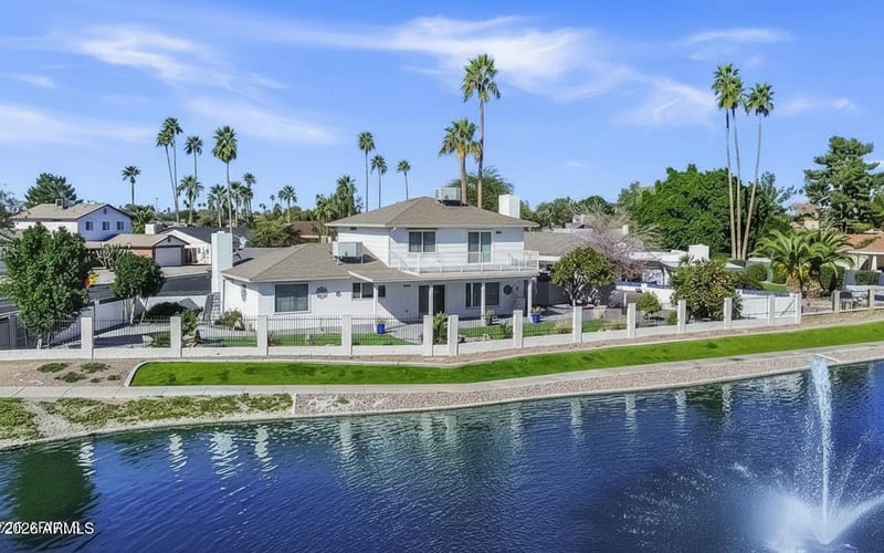 Listing details for 2609 Saratoga --, Mesa, AZ 85202 : Wake up to lakefront living at it's finest! This rare Saratoga Lakes gem offers 150 feet of unobstructed water views on an oversized lot with stunning sunrises and a tranquil fountain right next to the backyard. In March 2026 a brand new roof and two new HVAC units with transferrable warranties we're installed offering peace of mind and energy efficiency for years to come. The two-story deck offers a cool patio underneath to spend your mornings and evenings and a large upper deck that's perfect for watching seasonal fireworks and the Dobson Ranch boat parades. A charming spiral staircase connects you to a possible hot tub below, convenient storage sheds and two mature orange trees for fresh delicious juice. Inside, you'll find a thoughtfully updated 3 bed, 3 bath home with Energy Star appliances, an efficient wood fireplace with an effective blower, and an electric fireplace that heats and changes colors. The expansive windows frame the lake views you moved here for and the roll-in shower and flexible multipurpose room with Murphy bed is perfect for mobility-challenged guests and a home office. Low maintenance landscaping, energy efficient roller shades, and awnings keep things comfortable year round, while the Rhino Shield exterior means one less thing to worry about. Beyond your private oasis, Dobson Ranch delivers the lifestyle: boating, golf, pools, tennis, pickleball, dog park, restaurant, and preschool. With this super convenient location, you'll enjoy easy access to the 101 and 60 and have less than 30 minutes to either airport. But why leave when the lake is calling? Your lakefront escape awaits you!