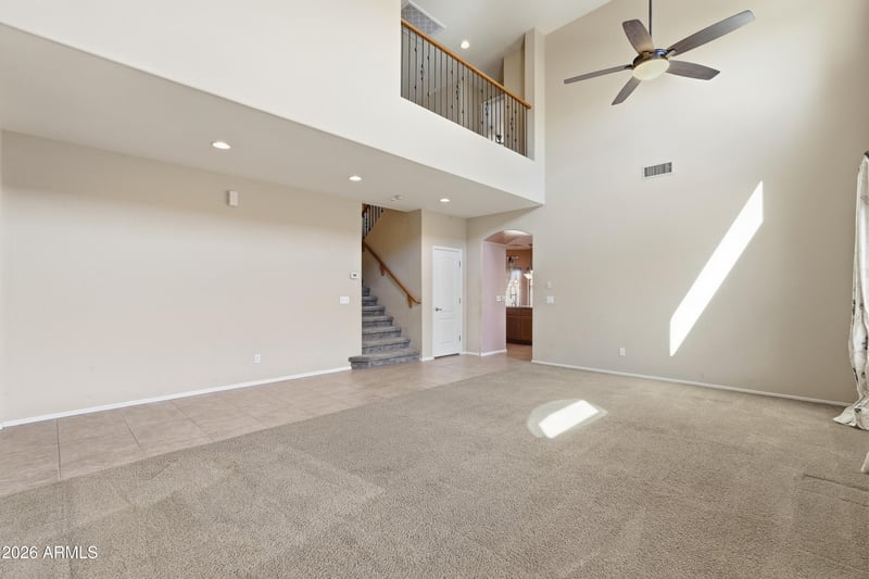 Listing details for 262 San Marino Loop, Casa Grande, AZ 85194 : Former model home on a lg lot w/ full bed & bath downstairs. The kitchen has engineer stone quartz countertops, travertine tile backsplash, walk-in pantry & refrigerator. Lg living room plus separate family rm w/ a travertine tile hearth around the fireplace. Upstairs, the lg primary suite offers a sitting area, dual walk-in closets, garden tub & walk-in shower. Laundry room has cabinets, a utility sink & washer/dryer. The 3 car tandem garage includes a lifetime warranted door & springs. Epoxy floors were done in 2025. Fully landscaped extra large backyard big enough for a pool. Zoned A/C w/ one newer unit. New window screens installed in 2026. Whole house water conditioner system. Across the street is the HOA's private waterpark & splash pad, as well as volleyball & basketball courts.