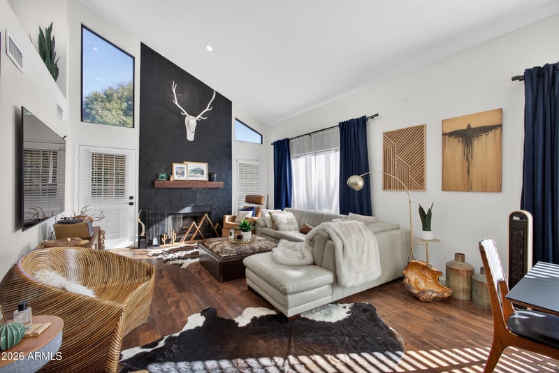 Listing details for 2623 Carriage Ln, Chandler, AZ 85224 : Rare oversized lot in the heart of Chandler! This beautifully maintained 2 bedroom + den, 2.5 bath townhome offers a highly desirable floorplan with two primary suites, including one upstairs and one downstairs. Situated on a lot nearly twice the size of most in the community, this home features its own sparkling private pool, manicured backyard, and the feel of a detached home. Interior features include vaulted ceilings, a stunning custom fireplace, newer appliances, and a generously sized kitchen. Over $100k in improvements, including updated bathrooms, roof, and AC. Two-car attached garage. Conveniently located near shopping, restaurants, and freeway access, with tennis and pickleball courts just one block away plus a community pool.