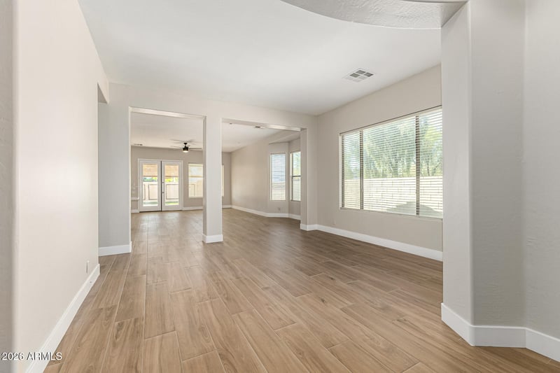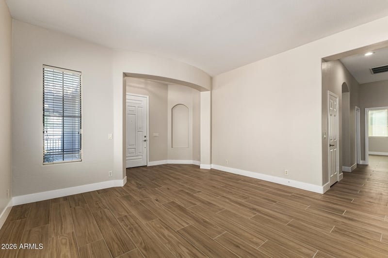 Listing details for 2640 Dragoon Dr, Chandler, AZ 85286 : Welcome to your corner lot 4 bedroom, 2 bathroom, 3 car garage home in the highly sought after Paseo Trail neighborhood. This beautifully remodeled home features fresh white kitchen cabinetry, designer quartz countertops, stainless steel appliances, and stunning wood plank tile flooring throughout, all complemented by modern five inch baseboards. The kitchen sits at the heart of the home, creating an ideal space for gathering and entertaining. Enjoy a thoughtfully designed split floor plan with a generously sized primary suite offering abundant natural light, a large walk in shower, a soaking tub, dual vanities, and a spacious walk in closet. The three additional bedrooms are well sized and positioned to provide comfort and privacy for family or guests. Step outside to your own private retreat where the backyard feels like a mini resort, complete with a sparkling PebbleTec pool and low maintenance artificial turf. This home truly checks all the boxes and is ready for its next owner to enjoy.