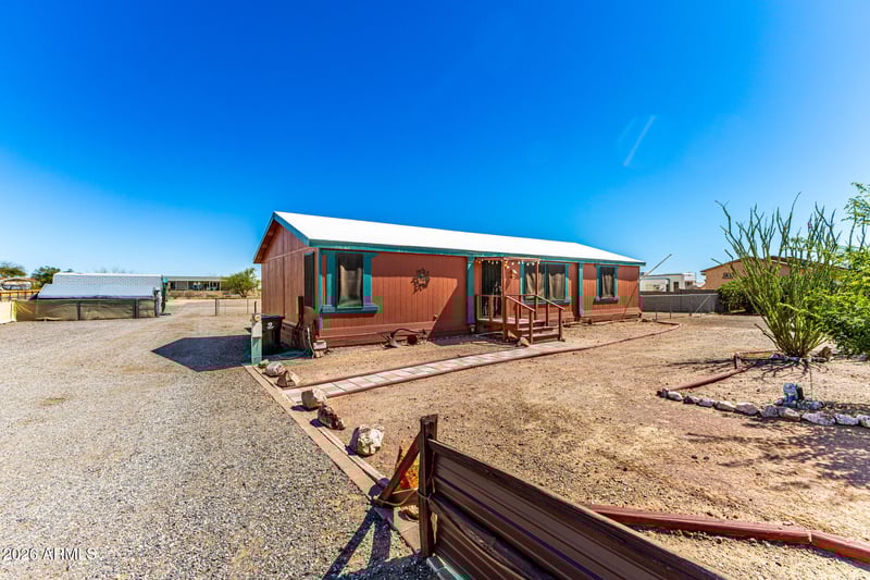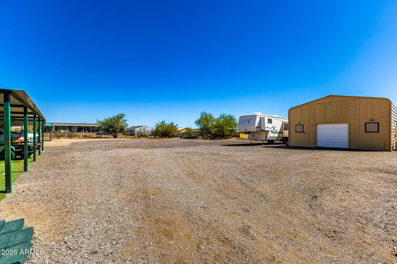 Listing details for 26415 160th Dr, Surprise, AZ 85387 : No HOA and over an acre of freedom! Fully remodeled 3 bed, 2 bath home on 1.04 acres with space for RVs, boats, horses, chickens, off-road toys or your home business. The massive 24'x25' garage with 15' ceilings, mini-split heat/AC, windows, fans and abundant outlets is perfect for a workshop or car enthusiast. Two lofted sheds with electricity offer even more storage or workspace. Property features 200-amp service plus a 50-amp RV hookup, new 4-car covered parking with lighting, and three wide RV gates. Inside you'll find fresh paint, new flooring, open-concept living, island kitchen and appliances included. 50-year insulated ''cool roof.'' Newly painted exterior, covered decks, landscaping with irrigation, and easy access to Jomax Rd and Loop 303 near shopping and growth.
