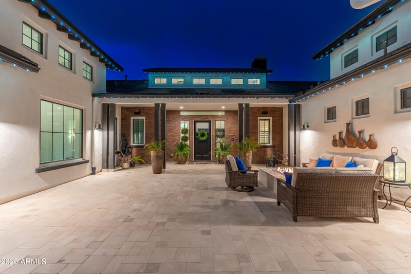 Listing details for 2656 Oriole Dr, Gilbert, AZ 85297 : Excellence in prestigious Whitewing at Germann Estates! Luxury meets security in this exclusive gated community. Greeted by a guarded entrance, elegant iron gates This one-of-a-kind 6,975 sq. ft. dream home, built by Toll Brothers, offers an exceptional blend of elegance, comfort, luxury and the ultimate in entertainment. Courtyard entry welcomes you to this amazing 6 Bedrooms, 6.5 Bathrooms Estate with a spacious 1,922 sq ft Basement, plus guest/ multi-gen Casita with separate entrance and 4 Car Garage! Grand living & dining room with soaring 20ft ceilings, a sleek tiled electric color-changing fireplace, 16ft wall of glass, and wet bar/ smoothie station. Kitchen is a true Chef's delight-Wolf 60''dual gas range with double ovens below, steam oven.