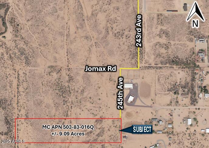 Listing details for 265XX 245th Ave #-, Wittmann, AZ 85361 : APPROX NE PROPERTY CORNER HERE: 33.722415, -112.586587. 9+ ACRES OF LEVEL LAND WITH APS ELECTRICITY AVAILABLE. AND PRETTY MUCH RIGHT THERE! RECENTLY SURVEYED WITH TALL PIPES MARKING THE CORNERS. PARCEL 1 OF SURVEY IN DOCS AND PHOTOS. EASY ACCESS ON GRAVELED ROAD FROM 243RD AVE AND PATTON. BEAUTIFUL MOUNTAIN VIEWS. NO LUKE ISSUES. SELLER MAY CARRY. WON'T LAST.