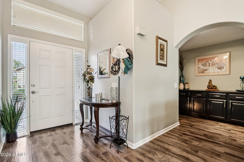 Listing details for 26615 Flame Tree Dr, Sun Lakes, AZ 85248 : This immaculate, updated Paloma model sits on a premium corner lot backing to the walking path in the highly desirable 55+ Gated Community of Palo Verde at Cottonwood & offers the perfect blend of comfort, style & resort living. Step inside to a spacious living & dining area with vaulted ceilings, abundant natural light & a large patio slider overlooking the beautifully maintained backyard with a heated pool & spa. The updated kitchen features stainless steel appliances, granite countertops & ample cabinetry, all opening seamlessly to the family room--ideal for everyday living & entertaining. Just off the kitchen, you'll find a convenient office or eat in kitchen area, plus a wet bar that makes hosting guests effortless. This thoughtfully designed floor plan includes 2 bedrooms 2.5 baths with 2 true primary suites--each offering walk-in closets & well-appointed baths with dual sinks providing comfort & privacy for you & your guests. Enjoy Arizona living at its finest in your private backyard oasis, complete with a heated pool, above-ground spa & direct access to the walking path. A newer roof adds peace of mind, & the 2-car garage offers generous storage space with built in cabinets.