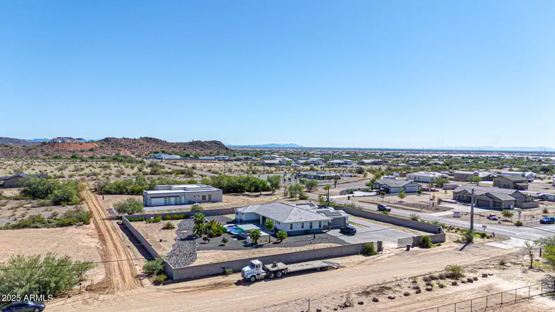 Listing details for 26731 155th Ave, Surprise, AZ 85387 : This is a very unique custom home, located in a well developed area. There are lots of good stuffs put into the house such as 2X6 framing, shear walls around the house, spray foam insulation thru out the house including garage, 3 car garage with insulated garage doors & glasses side panels. Paver driveway and sidewalks, 1500 gallons septic tank, 250 gallons propane tank, 2 propane tankless hot water heaters, 8' 3-panels shaker interior door with modern satin nickel door handles, ceiling fans in every room for your comfort, stainless steel Kitchen Aide appliances. 12' ceiling in the kitchen and great room, the rest are 10' high, Elegant entertainment center with LED lights & electric fireplace. Video camara. Bar center. Easy access to loop 303, I17 and I10, close to shopping, TSMC plant
