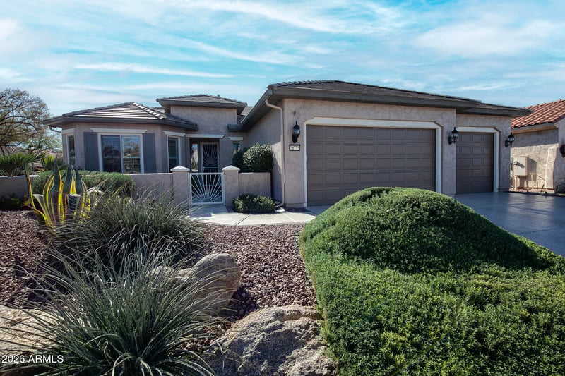 Listing details for 26775 Potter Dr, Buckeye, AZ 85396 : Welcome to your Dream Home in Sun City Festival. This Fiesta Model features over $160,000 in owner-selected upgrades & provides 2,323 sq ft of LUXURY LIVING on a private corner lot. The backyard is a true oasis, complete with Thunderbird Heated Pool & Spa. The home features tile flooring throughout, with both bathrooms and kitchen having undergone complete remodels. A newly painted exterior, gated courtyard featuring pavers, & a Polyspartic-coated driveway all contribute to outstanding curb appeal. Desert Landscaping & new Breeze Door lead to an INVITING, MOVE-IN ready interior. The open floor plan allows for comfortable living, while guests enjoy private quarters with an elegant walk-in shower. The kitchen features granite countertops, backsplash, breakfast bar, center island w/ storage, under-cabinet lighting, pull-out shelves, wall oven, SS appliances, granite sink, & reverse osmosis. The spacious owner's suite includes a sitting area & glass doors providing direct access to the backyard pool. The en suite bath features a tiled, frameless glass shower, jetted tub, double sinks, and walk-in closet. A versatile den/office with French Doors offers a quiet workspace. The great room opens to a private, fenced backyard highlighted by a covered patio, relaxing pool/spa, & lush landscaping with fruit trees. Additional amenities include a laundry room with extra cabinetry, counterspace, & sink. The 3-car garage has epoxy floors, built-in cabinets, overhead storage, new garage door rollers, & solar-powered attic fans. Recent updates include a new HVAC system (2020), NuVo H2O water softener (2020), & water heater (2024). Interior cabinets, doors & trim were all recently painted. Conveniently located near the Sage Recreation Center with all the World Class Amenities Sun City Festival provides, this property presents an excellent opportunity to begin Living your Dream Life. Don't miss out on this Beautiful Property!