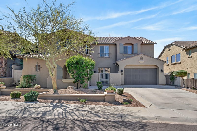 Listing details for 26860 89th Dr, Peoria, AZ 85383 : Experience luxury living in the prestigious Westwing Mountain. This stunning home immediately impresses with its stately curb appeal, featuring a gated courtyard entry accented by timeless stone masonry. The grand interior features a curved staircase, soaring ceilings, & plantation shutters. Entertain in the chef's kitchen featuring premium granite counters, lots of cabinetry, walk-in pantry & Wine Cellar. Retreat to the primary suite, a spa-like sanctuary w/ a soaking tub and dual vanities. Movie nights are elevated in the private theater room, customized for the ultimate cinematic experience. A resort style backyard is an entertainer's dream! Relax by the pool or gather at the built-in BBQ, next to the fireplace, or enjoy sitting under a Vine covered Gazebo-all framed by mountain views!