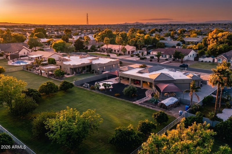 The Executive Ranch Lifestyle: Beyond the sparkling private pool lies a true ''Living Pantry'' featuring 12 mature fruit and nut trees and an expansive garden. This is one of the few luxury neighborhoods where horses, chickens, goats, and pot-belly pigs are welcomed. With a minimal annual HOA fee and Arizona's SB 1415 ADU laws, you have the freedom to add a guest manor or a custom RV garage without the typical suburban restrictions.