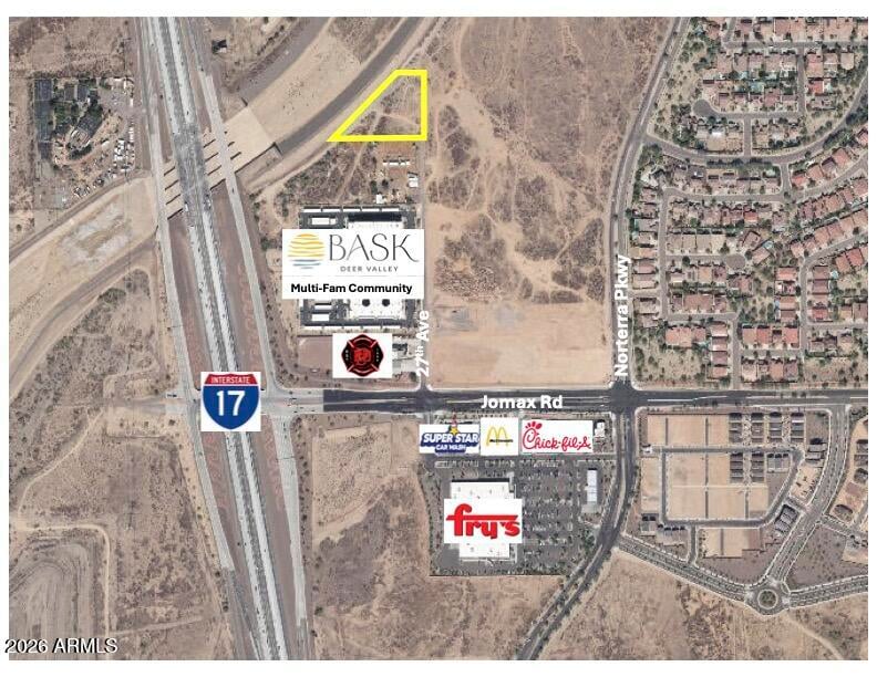 Listing details for 268XX 27th Avenue -- #-, Phoenix, AZ 85085 : This exceptional ±2.2-acre parcel just North of the intersection of 27th Avenue and Jomax Road is strategically positioned in the heart of the North Phoenix growth corridor, one of the Valley's most dynamic and rapidly expanding areas. Surrounded by ongoing residential and commercial development, the site offers potential freeway visibility, great accessibility, and long-term upside. The property benefits from close proximity to major regional employers and economic drivers, including TSMC, USAA, W.L. Gore, and the Deer Valley Air Park, making it ideally suited for a variety of commercial or residential uses. With strong population growth, expanding infrastructure, and increasing demand driven by nearby high-tech and aerospace investment, this location presents a compelling opportunity for investors and developers seeking to capitalize on North Phoenix's continued momentum.