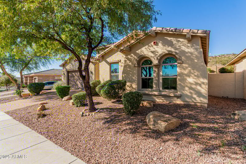 Listing details for 26928 102nd Ln, Peoria, AZ 85383 : Welcome home to this stunning 5-bedroom, 3-bath retreat perched at the top of the hill in the sought-after Mesquite community! A private courtyard sets the tone, while the expansive 3-car tandem garage adds everyday convenience. Inside, the open layout shines with granite counters, stainless steel appliances, and an island breakfast bar made for gathering. The primary suite is a true escape, featuring a walk-in closet and a spa-inspired bath. Fresh paint, brand-new carpet, and professionally cleaned tile and grout create a crisp, move-in-ready vibe. Outside, the entertainer's backyard steals the show with a sparkling pool, built-in BBQ, covered patio, low-maintenance desert landscaping, and turf. Enjoy breathtaking views, a paid-off solar system for energy savings, and a prime location